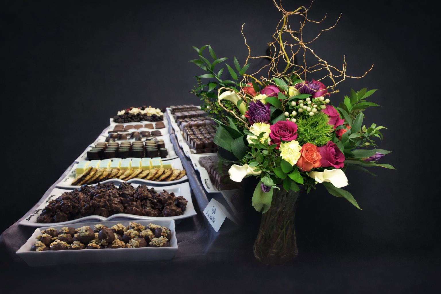 Bouquet de fleurs de saison accompagné d’une boîte de chocolats, d’une valeur de 50 $ par mois, pour une durée de 6 mois